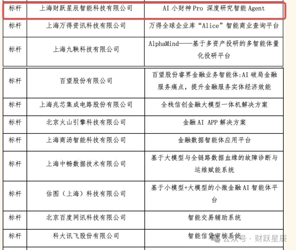 界面财联社旗下财跃星辰自研金融深度研究智能体产品——“AI小财神Pro”今日获2025人工智能大模型金融领域创新应用大赛“标杆奖”。本次大赛由中国银联国家人工智能应用中试基地、上海金融领域大模型应用训练中试基地联合举办,共103家单位170个项目参与申报。